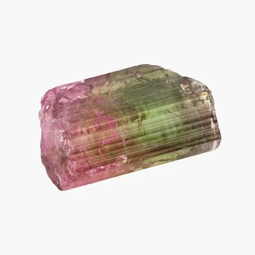 Multicoloured Varieties: Watermelon tourmaline, with pink and green bands, is one of the most popular and unique varieties.